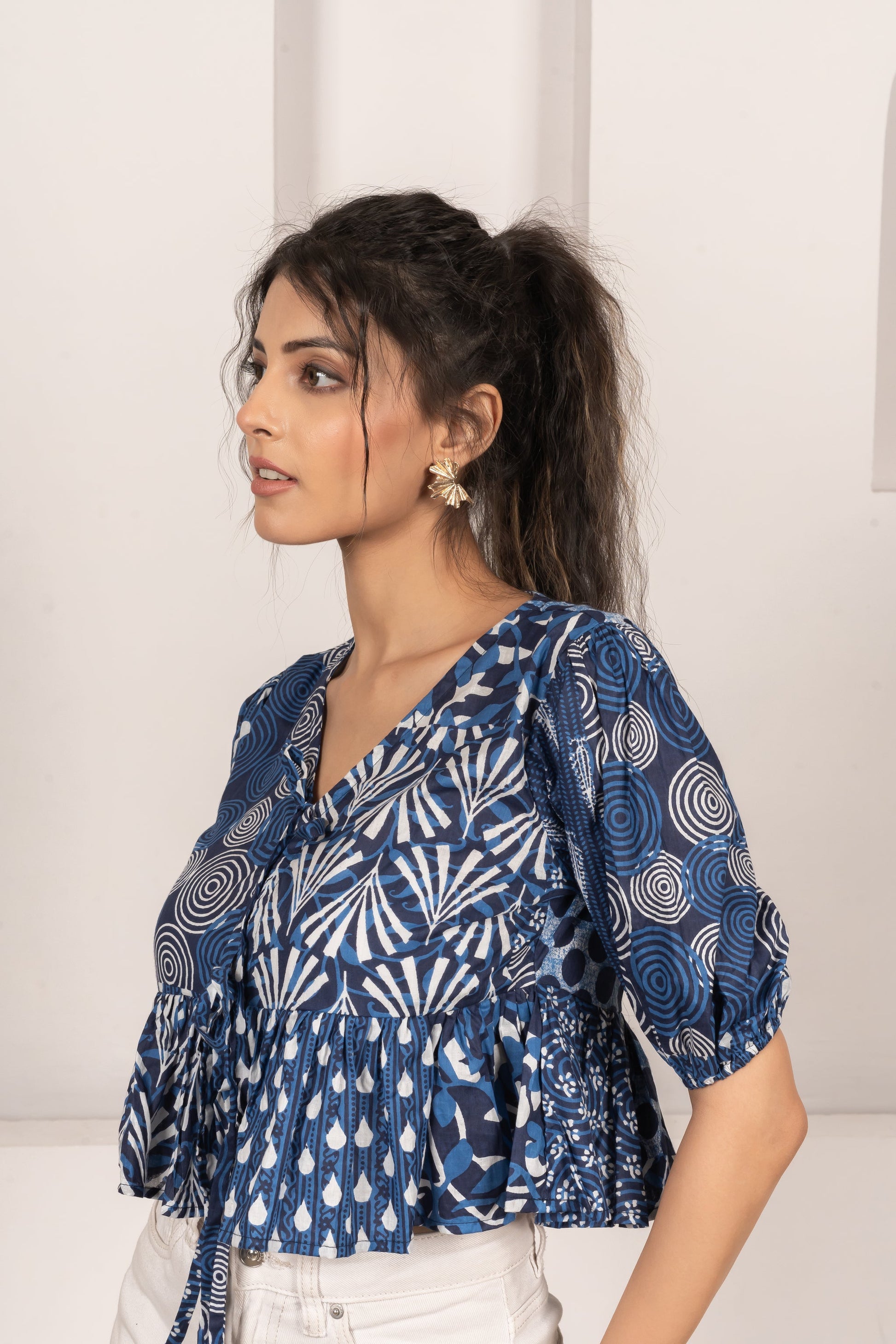 Embrace effortless elegance with the Patchwork Chic Top. Crafted from premium cotton cambric, this 15″ length front-knot top features an artistic patchwork design, ensuring each piece is one-of-a-kind. Soft, breathable, and stylish, it’s perfect for pairing with high-waist jeans or skirts for a day out or a casual brunch.