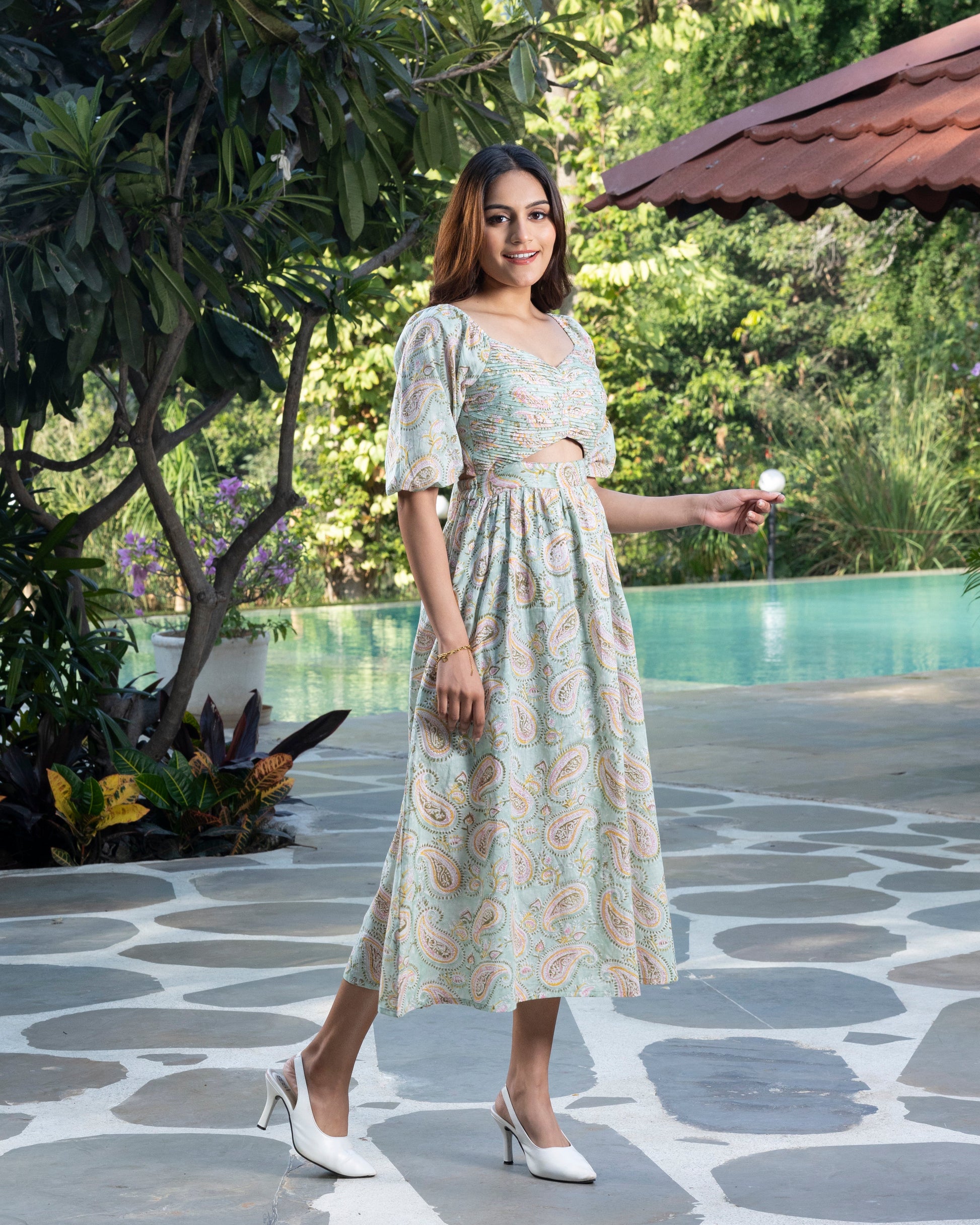 Embrace elegance with our Pleated Dress, crafted from soft, breathable cotton for all-day comfort. Featuring handblock prints in natural dyes, this dress offers a flattering fit with tailored pleats, smooth inner lining, and convenient pockets. Versatile and eco-friendly, it's perfect for any occasion.