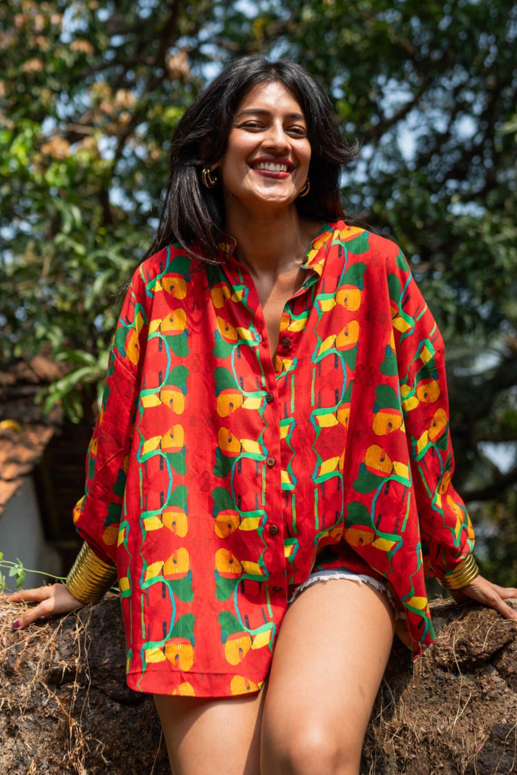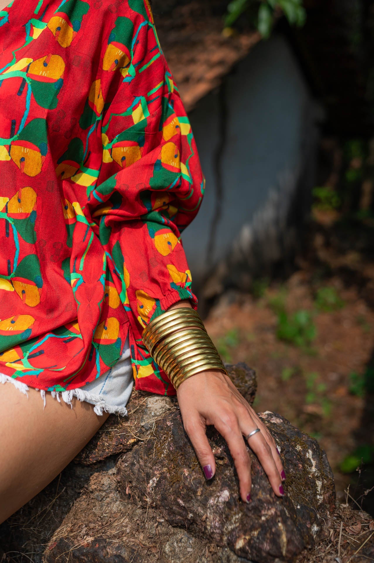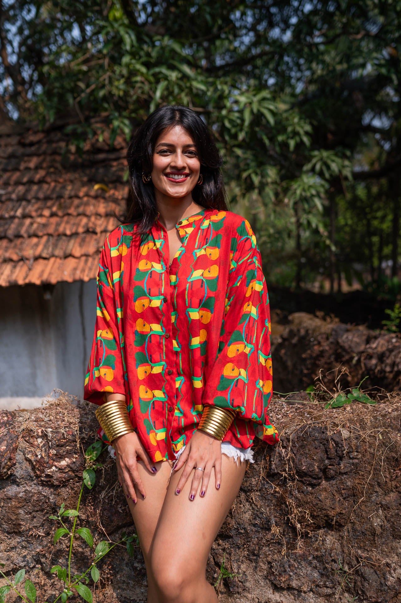 The original Hot Sauce dress has been wildly loved and why must a good print not become a shirt too? This yummy, fiery, abstract red and green print is literally like wearing an artwork! Crafted in a free-flowing silhouette with elasticated cuff, this top screams comfy and is a straight up party fave. No questions, we're pairing this with some unabashedly loud gold jewellery!