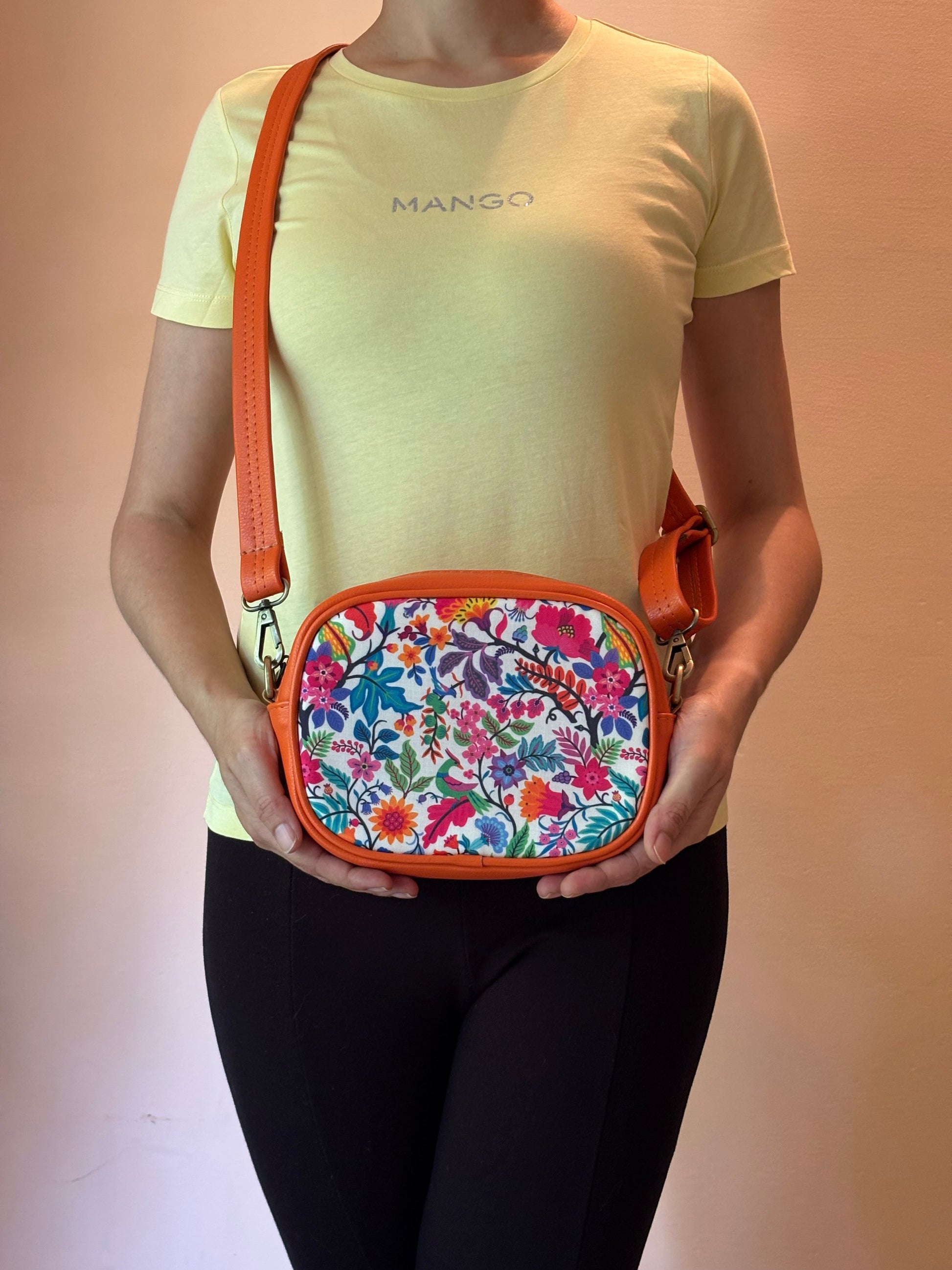Bright, bold, and full of life — the Wildflower Sling Bag showcases a vibrant multicolor floral design on a fresh white base, accented with striking orange detailing. Featuring a spacious zippered compartment and an adjustable strap, it's perfect for everyday adventures, travel, or casual outings. Handmade to add joy to your everyday style.